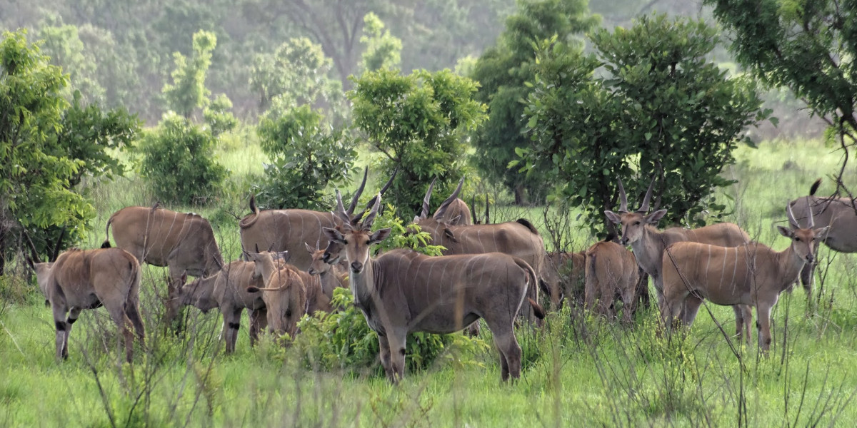 Various antelopes, including eland, kudu, and impala