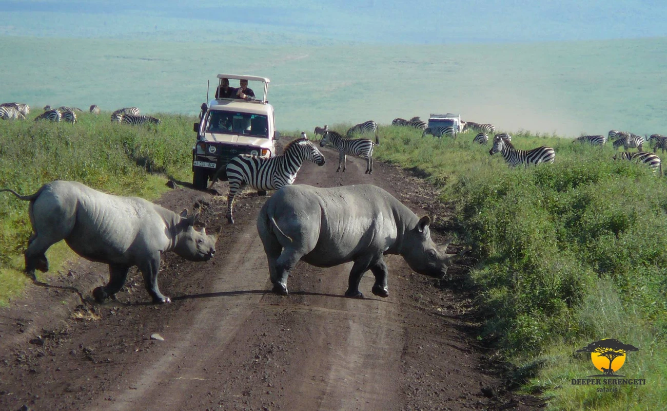 Once on the crater floor, your game drive begins across open grasslands and seasonal wetlands. The morning hours provide excellent opportunities to observe lion prides resting after night hunts, large herds of buffalo and zebra grazing across the plains, and elephants moving between forested areas. With luck, you may also spot the endangered black rhino, one of the crater’s most sought-after sightings.